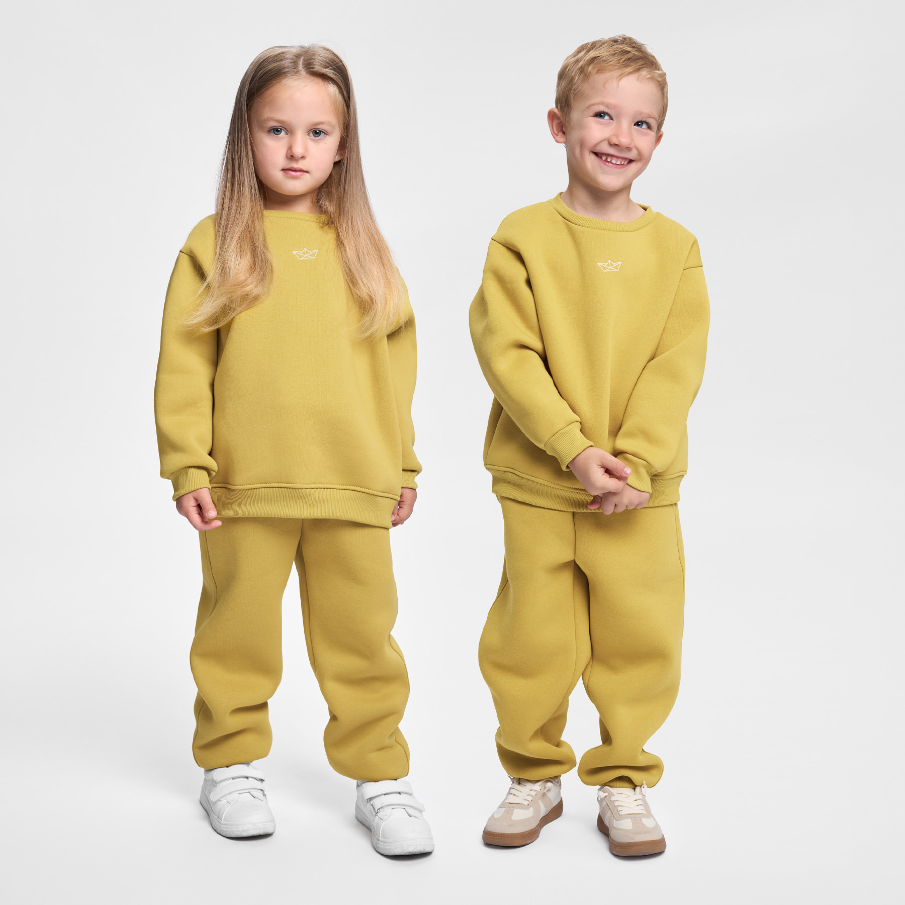 Описание: Уютный и стильный детский костюм для прогулок и отдыха, выполнен из мягкого футера премиум класса с небольшим начесом для девочек и мальчиков. Свитшот свободного покроя, украшен оригинальной вышивкой в тематике коллекции. Линия плеча слегка приспущена мягко подчеркивая форму конструкции. Рукава на манжетах. По низу мягкий пояс. Горловина оформлена полукруглым вырезом и невысоким воротником. Брюки свободной формы. Широкий пояс фиксируется декоративным светлым шнуром. Карманы с подкройным бочком прямого среза. По низу штанин эластичные манжеты.