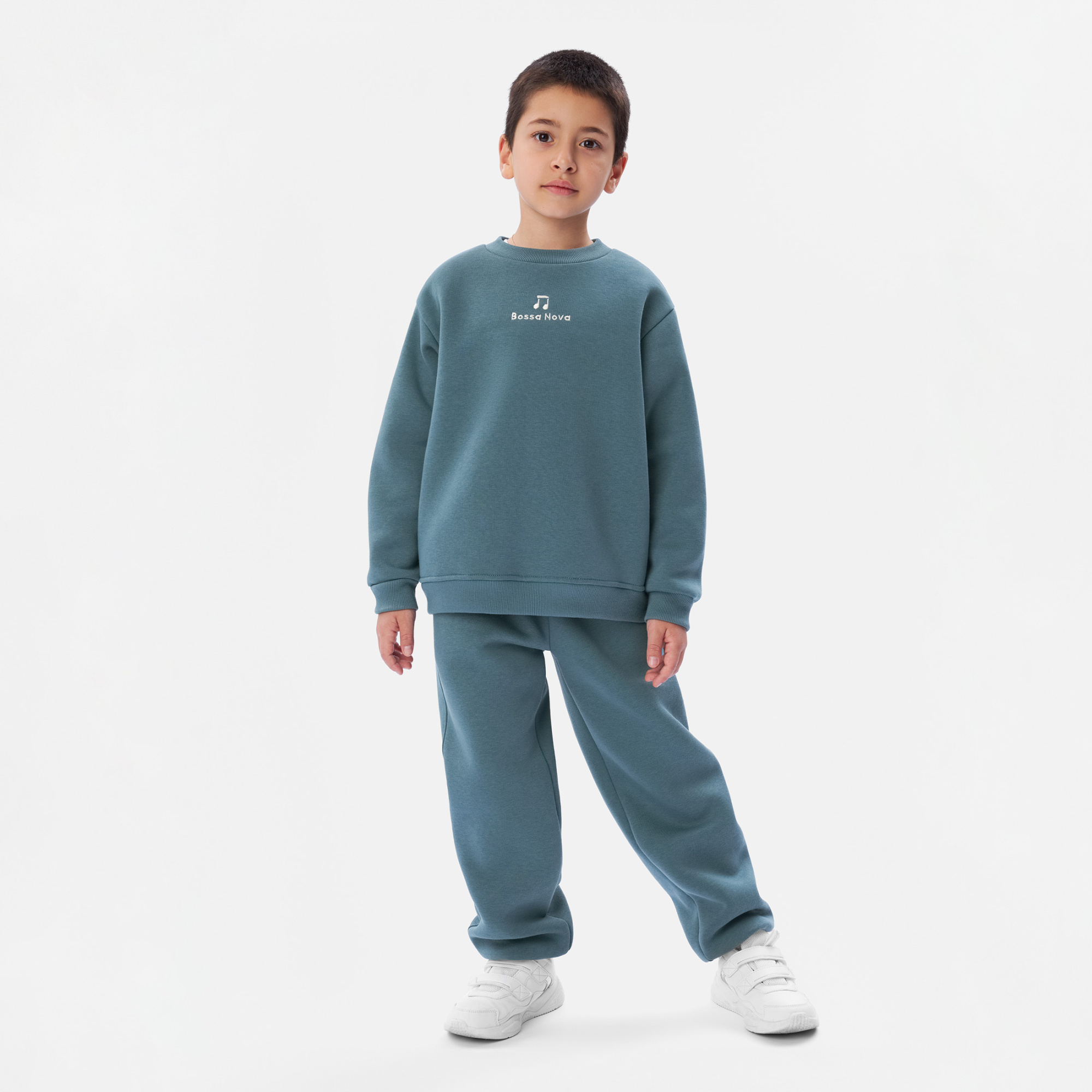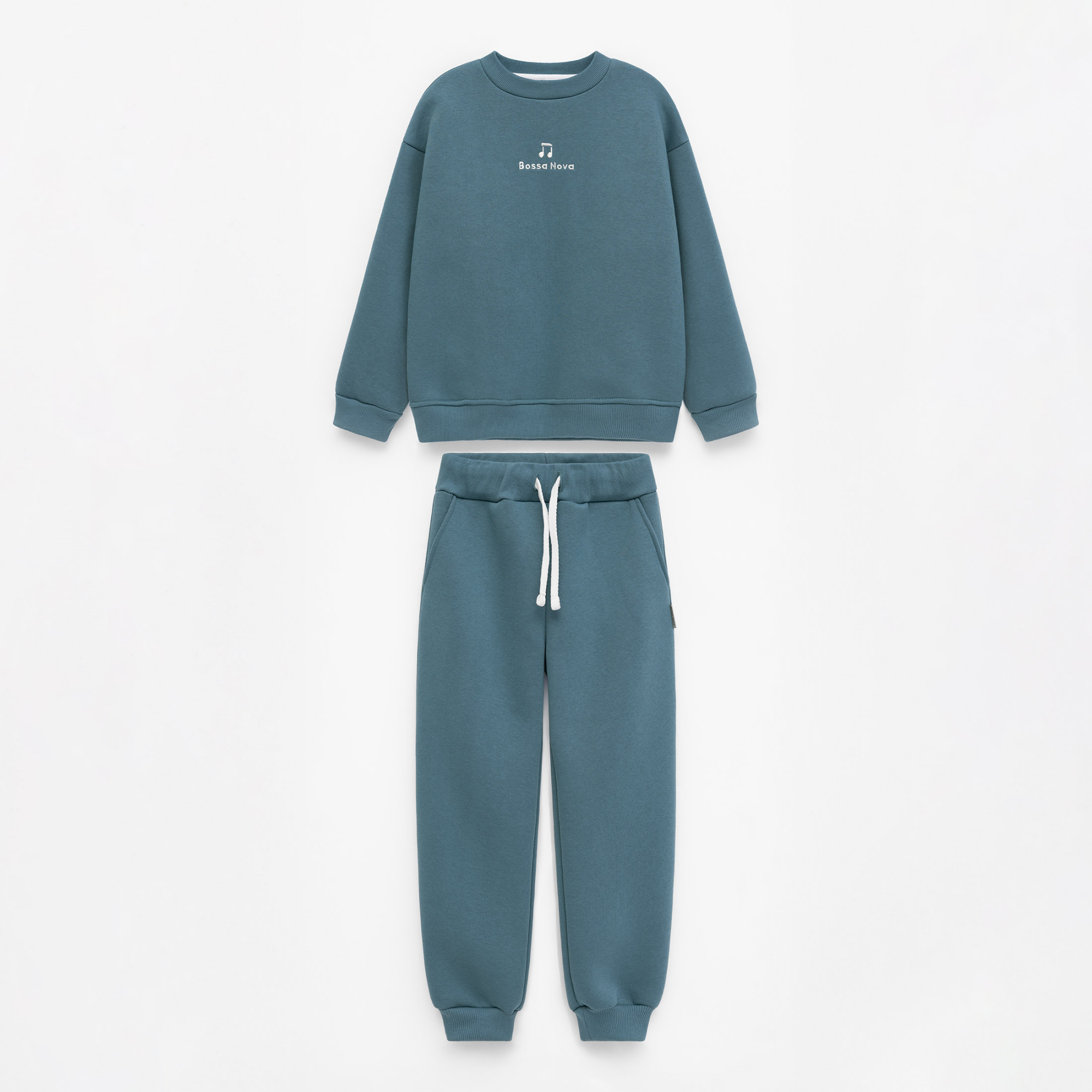 Описание: Уютный и стильный детский костюм для прогулок и отдыха, выполнен из мягкого футера премиум класса с небольшим начесом для девочек и мальчиков. Свитшот свободного покроя, украшен оригинальной вышивкой в тематике коллекции. Линия плеча слегка приспущена мягко подчеркивая форму конструкции. Рукава на манжетах. По низу мягкий пояс. Горловина оформлена полукруглым вырезом и невысоким воротником. Брюки свободной формы. Широкий пояс фиксируется декоративным светлым шнуром. Карманы с подкройным бочком прямого среза. По низу штанин эластичные манжеты.