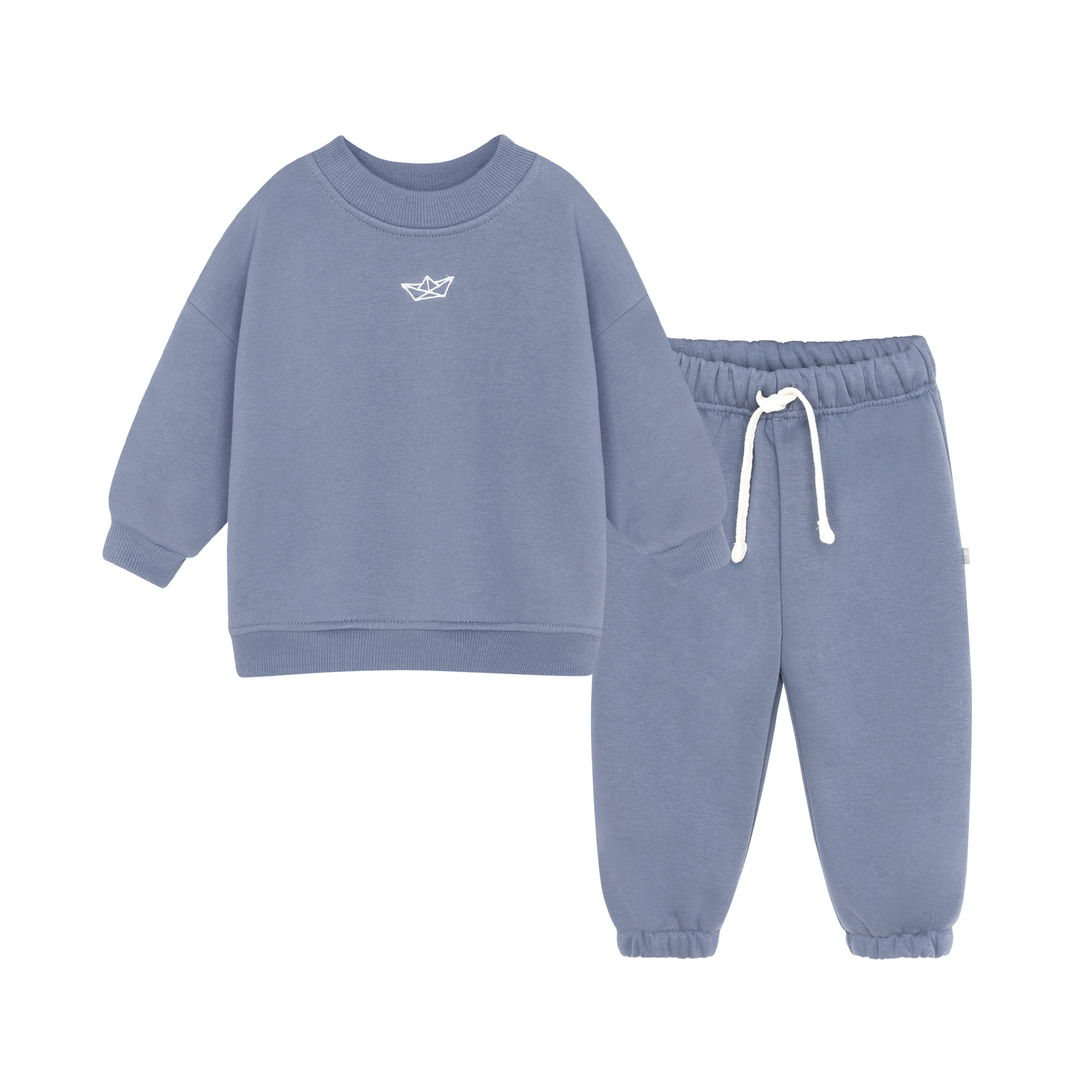 Описание: Уютный и стильный костюм для самых маленьких, выполнен из мягкого футера премиум класса с небольшим начесом. Свитшот свободного кроя, украшен оригинальной вышивкой в тематике коллекции. Линия плеча слегка приспущена мягко подчеркивая форму конструкции. Рукава на манжетах. Низ собран на мягкий пояс. Форма брючек свободная, комфортная в движении. Пояс цельнокроеный на резинке, фиксируется декоративным светлым шнуром. Низ штанин с фиксирующей резинкой.