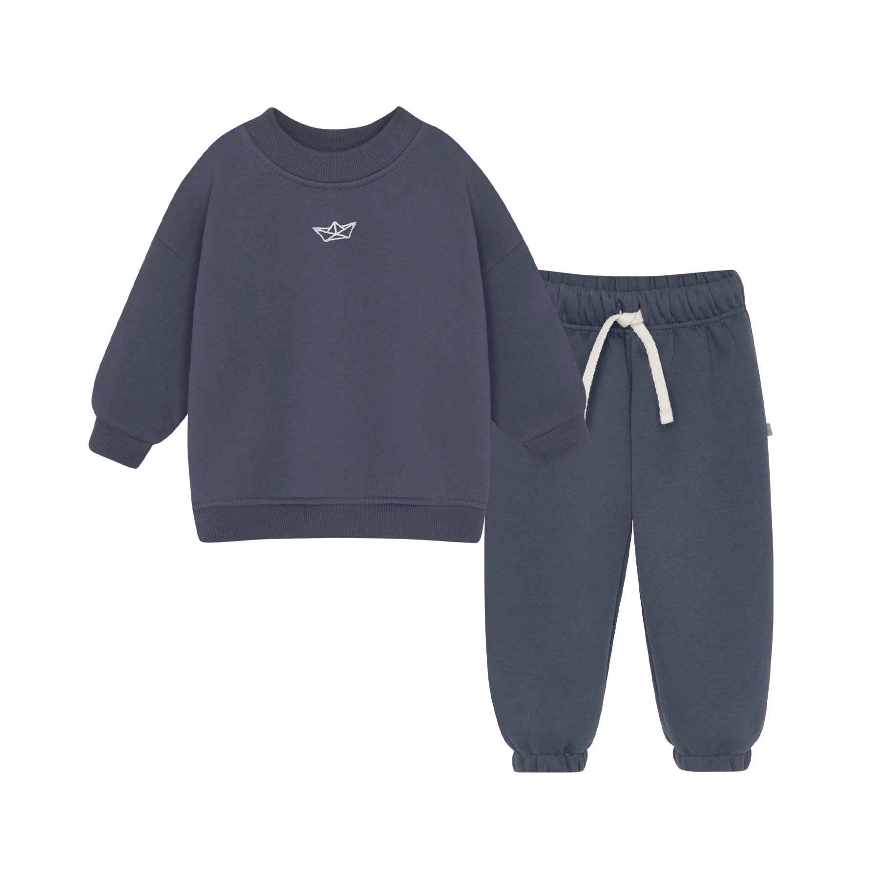 Описание: Уютный и стильный костюм для самых маленьких, выполнен из мягкого футера премиум класса с небольшим начесом. Свитшот свободного кроя, украшен оригинальной вышивкой в тематике коллекции. Линия плеча слегка приспущена мягко подчеркивая форму конструкции. Рукава на манжетах. Низ собран на мягкий пояс. Форма брючек свободная, комфортная в движении. Пояс цельнокроеный на резинке, фиксируется декоративным светлым шнуром. Низ штанин с фиксирующей резинкой.