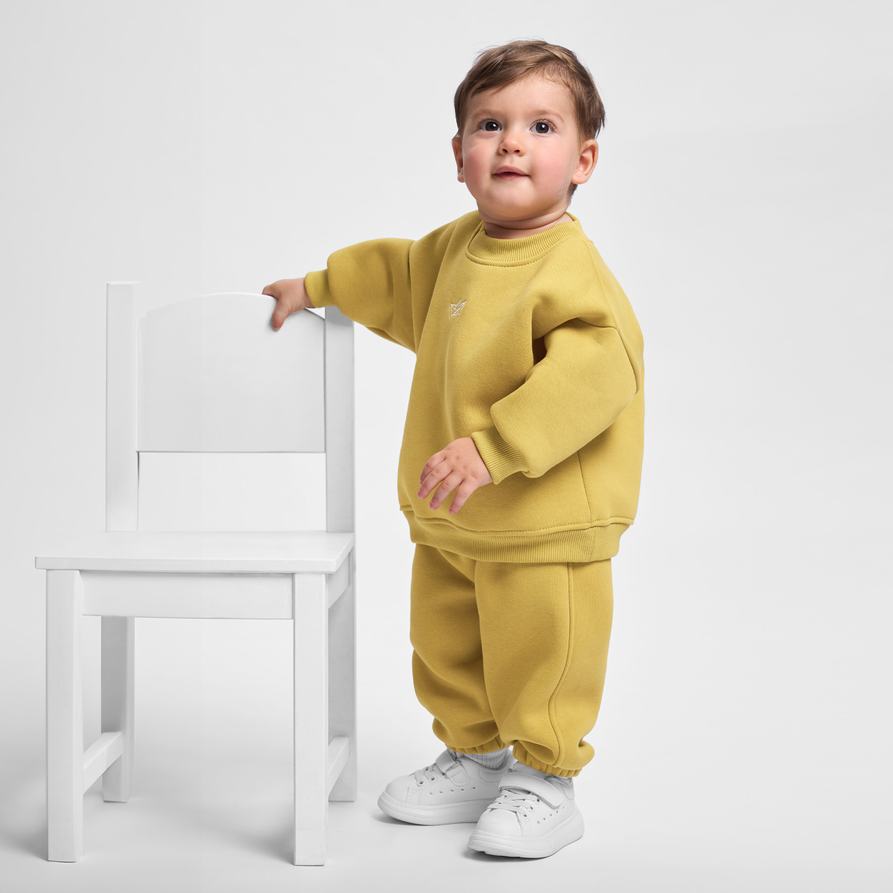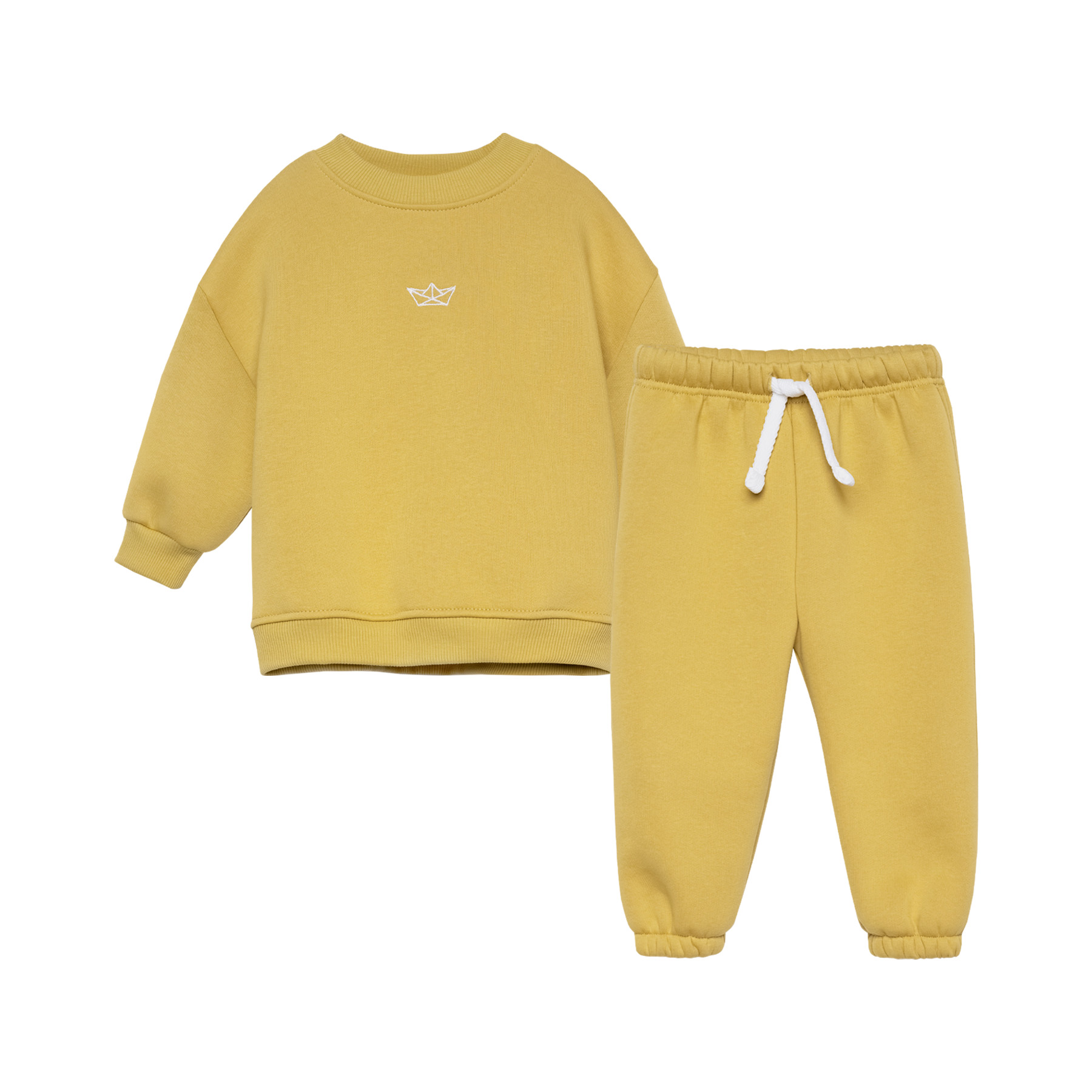 Описание: Уютный и стильный костюм для самых маленьких, выполнен из мягкого футера премиум класса с небольшим начесом. Свитшот свободного кроя, украшен оригинальной вышивкой в тематике коллекции. Линия плеча слегка приспущена мягко подчеркивая форму конструкции. Рукава на манжетах. Низ собран на мягкий пояс. Форма брючек свободная, комфортная в движении. Пояс цельнокроеный на резинке, фиксируется декоративным светлым шнуром. Низ штанин с фиксирующей резинкой.