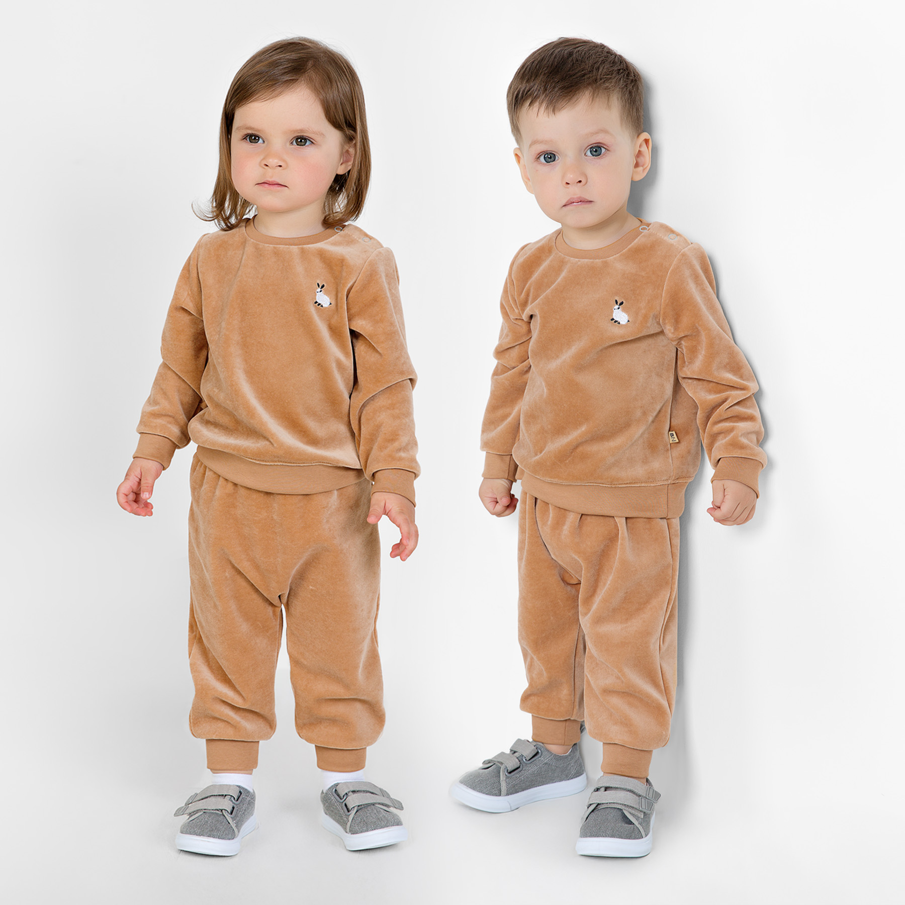 Описание: Наш новый стильный комплект для самых маленьких, свитшот и брючки, выполнен из мягкого и приятного на ощупь хлопкового велюра. У этого полотна масса достоинств. Оно: гипоаллергенно, гигроскопично, с хорошей теплоизоляцией – ворс создает воздушную прослойку, которая сохраняет тепло. Свободный крой свитшота максимально лаконичен. Застежка на 2 кнопки на левом плече спроектирована для удобства одевать без усилий. По низу модель мягко фиксирует пояс. Рукава прямые на манжете. Полочка декорирована милой вышивкой. Брючки спроектированы с комфортной свободой на облегание. По низу штанин эластичные манжеты. Пояс со шнуром, который помогает зафиксировать брючки по талии на нужную величину. Рекомендуем использовать модель как второй слой в демисезонный период.